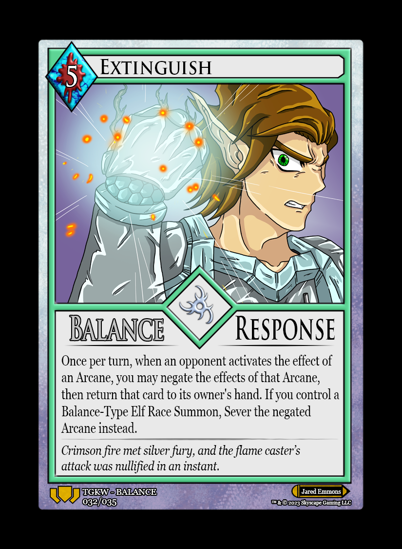 Once per turn, when an opponent activates the effect of an Arcane, you may negate the effects of that Arcane, then return that card to its owner’s hand. If you control a Balance-Type Elf, Sever the targeted Arcane instead.